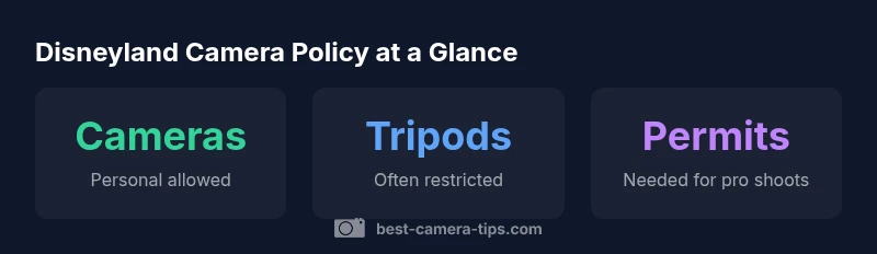 Can you take cameras into disneyland? The short answer is yes for most everyday photography gear, but with caveats. This article unpacks what counts as camera gear, what is allowed, and how to plan a visit so you can capture the magic with minimal friction. At the gates, you should expect a standard security check where lenses and bodies are scanned; heavy tripods and monopods are rarely allowed in pedestrian areas. For families and hobbyists, a compact or mirrorless setup is ideal due to portability and speed. The goal is to balance the desire for high-quality shots with guest comfort and park operations. Rules can vary by park and season, so verify the latest guidelines before you go. According to Best Camera Tips, prioritizing mobility over bulky rigs helps you move through crowds more efficiently.