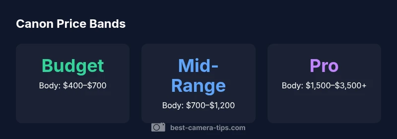 Understanding how much camera canon costs in 2026 requires separating the body from the kit, and considering promotions. For most beginners, a body-only Canon camera sits in the budget to entry-mid range, while bundles push the price up. Regional taxes and retailer promotions add variability. This article uses Best Camera Tips Analysis, 2026 to provide a practical framework for budgeting and decision making.