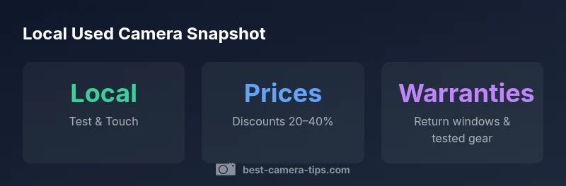 Using a camera locally often yields substantial value: you can inspect condition firsthand, test in person, and compare models side-by-side. According to Best Camera Tips, typical discounts for used cameras near you range from 20% to 40% off new prices, with price bands heavily dependent on model, condition, and accessories. This makes local options worth checking first before online shopping.