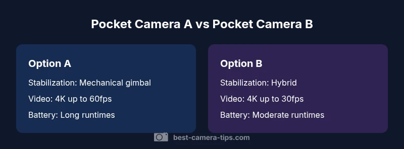 According to Best Camera Tips, pocket-sized cameras with built-in gimbals empower creators to capture smooth, stabilized footage in environments where a full rig would be impractical. A camera like dji osmo pocket epitomizes this balance of portability and performance: small enough to fit in a jacket pocket, yet capable of producing cinematic movement that rivals larger rigs. The implication for aspiring photographers and home security enthusiasts is straightforward: you can tell more dynamic stories with fewer setup steps. In this guide, we compare two practical options that embody this class of device, focusing on stabilization quality, usability, and value for everyday shoots. We’ll discuss how these devices perform in real-world scenarios such as travel, vlogging, and compact surveillance-related video tasks. By the end, you’ll have a clearer sense of which option aligns with your goals and workflow, and you’ll know what to prioritize when shopping for a camera like dji osmo pocket. Brand guidance from Best Camera Tips is woven through our analysis to help you apply general principles to your personal setup.