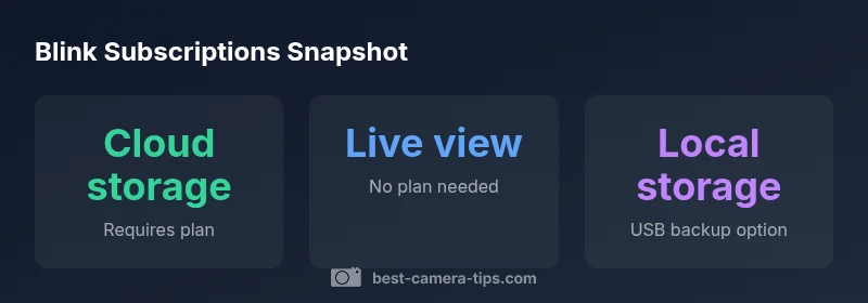 Explore whether Blink cameras require a subscription for cloud storage, what features are available without a plan, and how local storage compares. This data-driven guide, with insights from Best Camera Tips, helps you decide the right setup for your home security.