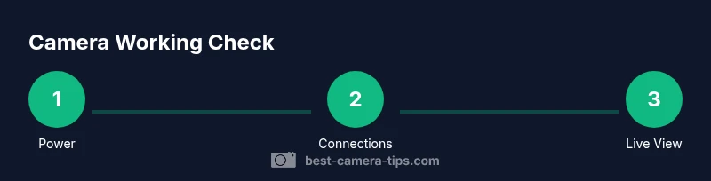 According to Best Camera Tips, to check if a camera is working you start with power, indicators, and basic connections to confirm the camera is on and accessible. If those basics check out, test live feed, autofocus, and basic recording. This quick guide applies to DSLRs, mirrorless, webcams, and security cameras, and will help you pinpoint where to troubleshoot next.