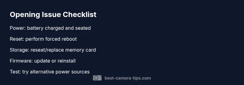 A practical, urgent step-by-step troubleshooting guide for a camera that won't open, covering power, firmware, storage, and service options to get you back shooting quickly.
