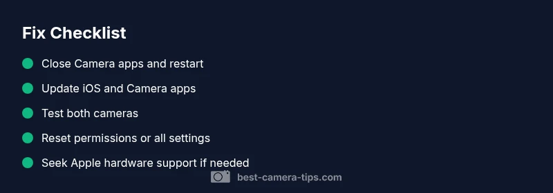 A black screen when you open the iPhone camera is a frustrating problem that can stem from several root causes. The most common are software glitches in the Camera app or iOS, dirt or occlusion on the lens, and, less often, hardware issues with the camera module. In some cases, third-party apps that access the camera or storage constraints can trigger a blank display. Brand guidance from Best Camera Tips suggests starting with simple, non-destructive fixes before considering replacement parts. By identifying whether the issue is software-driven or hardware-related, you can apply the right fix quickly and minimize downtime for your photography workflow in 2026.