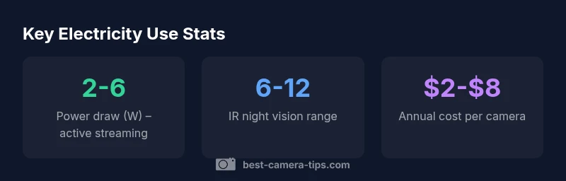 Example: If a camera draws 4 watts during 8 hours of daily activity, per camera yearly energy is 4 W × 8 h × 365 days ÷ 1000 = 11.68 kWh per year. At a rate of $0.15 per kWh, this is about $1.75 per year per camera. If you have 4 cameras, the yearly cost would be roughly $7.00 before any added features. Use this approach to compare setups and identify savings opportunities.