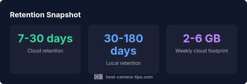 - Check default cloud retention and available extensions. - Verify local drive space and overwrite settings. - Test exports of important clips. - Set up event tagging and long-term archiving for critical footage. - Review retention policies annually and adjust as needed.