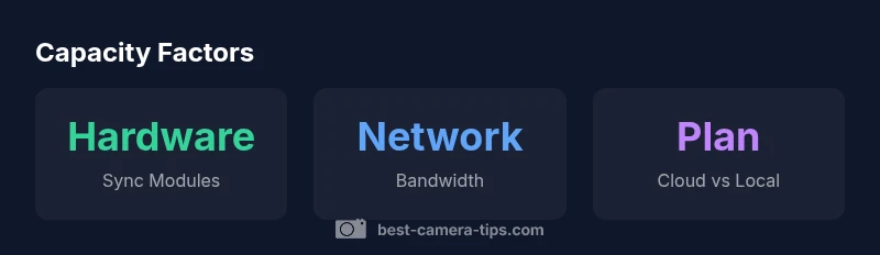 According to Best Camera Tips, Blink's ability to scale a camera network hinges on two core pillars: hardware and network. The hardware layer is built around Blink Sync Modules, which act as hubs that connect cameras to your local network and the cloud. Each additional module can support more cameras, but the exact practical limit is not published by Blink. The network layer—your Wi‑Fi bandwidth and router quality—directly affects how smoothly multiple streams can be processed and stored. If you plan to grow beyond a small setup, assess how many devices your router can handle without congestion, and be mindful of upload speeds, latency, and potential interference from other devices. In short, capacity is a function of both the number of modules you deploy and the strength of your home network.