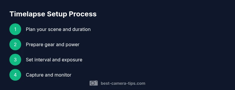 According to Best Camera Tips, a dependable timelapse setup starts with a stable tripod and a camera that offers reliable interval shooting and long battery life. The team also notes that planning around the scene duration and light conditions pays off more than chasing the latest sensor tech.
