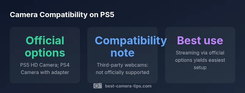 According to Best Camera Tips, understanding what cameras are compatible with ps5 is essential before you invest in gear. At its core, PS5 supports two main camera pathways: the official PS5 HD Camera, designed specifically for Sony’s platform, and the PS4-era PlayStation Camera that can be used with Sony’s adapter. This means you can choose between a purpose-built option and a backward-compatible pathway when you want to stream, capture, or video-chat during gameplay. For aspiring photographers and home security enthusiasts, selecting the right camera path reduces setup friction and minimizes compatibility surprises after a firmware update. In many cases, you’ll want to test lighting, framing, and microphone integration alongside video capture to achieve a polished result.