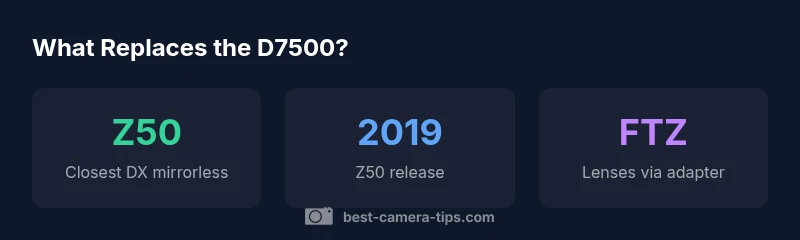 According to Best Camera Tips, the question what camera replaced the nikon d7500 doesn't have a single direct answer. Nikon's strategy since the D7500's launch has leaned toward embracing mirrorless technology, shifting away from traditional DSLR upgrades in many segments. In practice, there isn't a one-to-one successor in the Nikon lineup. The closest answer to what camera replaced the nikon d7500 is twofold: among DSLR-era references, the D780 served as a bridge, while in the current product family, DX-format mirrorless bodies like the Z50 represent the modern path forward for enthusiasts. For a seamless comparison, consider both ergonomics and ecosystem, including lenses and adapters, when evaluating upgrades. The rest of this article will unpack the logic Nikon uses, compare specs at a high level, and give you practical upgrade paths based on your shooting priorities.