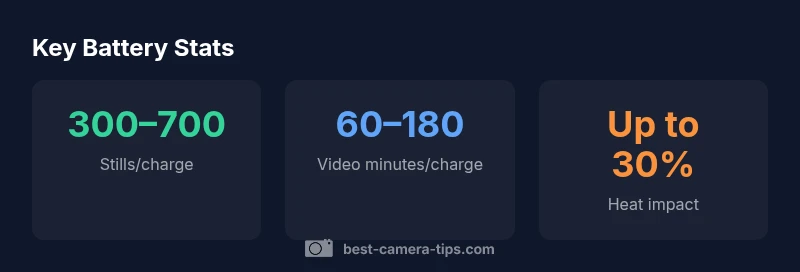 Battery longevity is affected by several factors that can dramatically swing the numbers you see in practice. Core variables include: skill-dependent usage patterns (lots of live view and continuous AF drain more power), environmental temperature (heat accelerates chemical aging; cold can reduce capacity temporarily), display usage (LCD and EVF consumption), and camera settings (high brightness, 4K, high frame rates). Additionally, the age of the battery matters: lithium-ion cells suffer gradual capacity loss over time. According to Best Camera Tips, even the best cells will show diminishing returns after several hundred charge cycles. You can mitigate many effects by using lower display brightness, enabling power-saving modes, and avoiding unnecessary wireless features in the field.