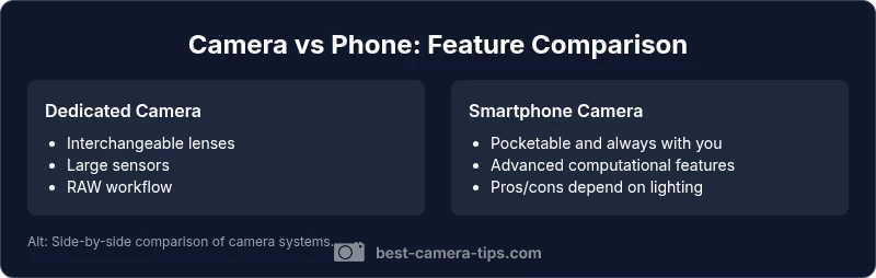 When you frame the comparison around your typical subjects—portraits, landscapes, street photography, or video—you’ll see that is camera better than phone shifts with each use case. The Best Camera Tips team emphasizes balancing two axes: optical realism (the physics of light) and digital optimization (how software processes a capture). The end result is not a single winner but a practical decision matrix tailored to your needs.