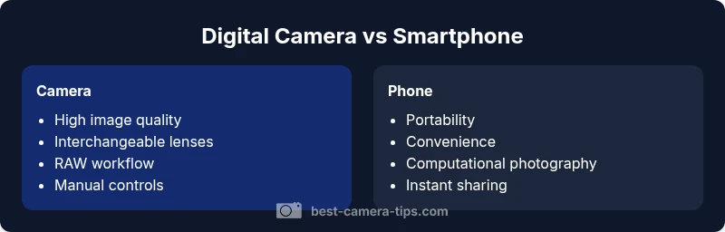 Choose a digital camera when image quality and flexibility matter most. Opt for a smartphone for everyday moments and instant sharing. The Best Camera Tips team emphasizes building a camera system that scales with your goals and skills.